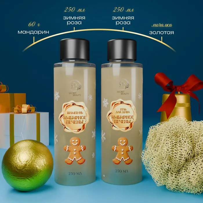 Новогодний подарочный набор косметики «Зимняя вьюга», с ароматом имбирного пряника и корицы. Золотая серия — Характеристики