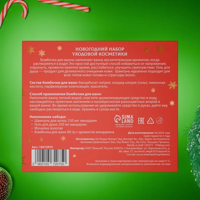 Новогодний подарочный набор косметики «Зимняя вьюга», с ароматом мандарина и корицы. Красная серия. — Характеристики