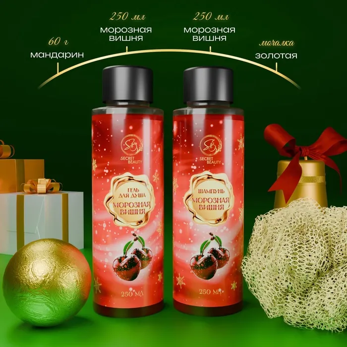 Новогодний подарочный набор косметики «Зимняя вьюга», с ароматом вишни и корицы. Красная серия — Характеристики