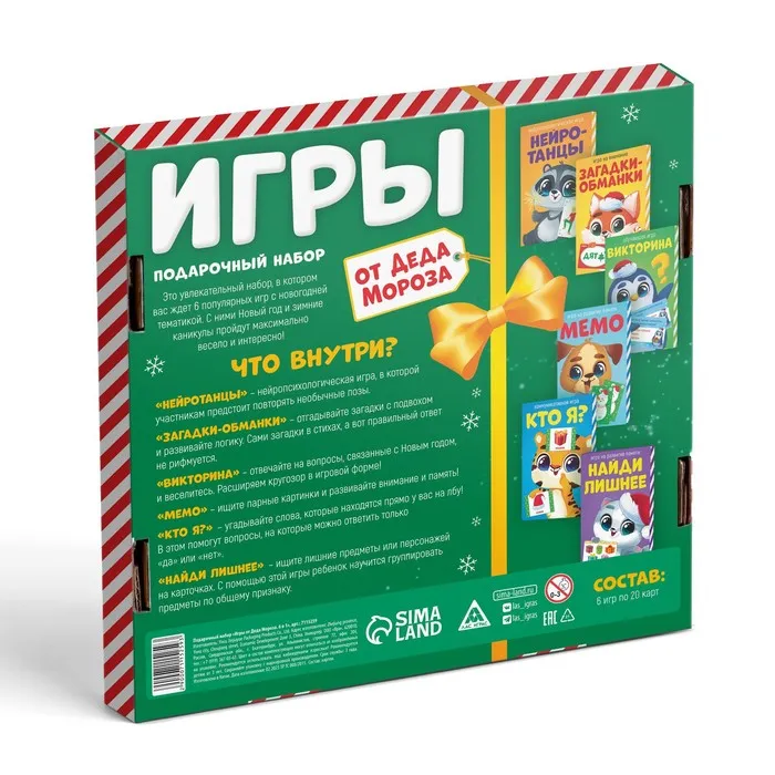 Новогодний подарочный набор «Новый год: Игры от Деда Мороза. 6 в 1», по 20 карт в каждой игре, 3+ — Характеристики