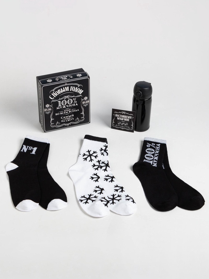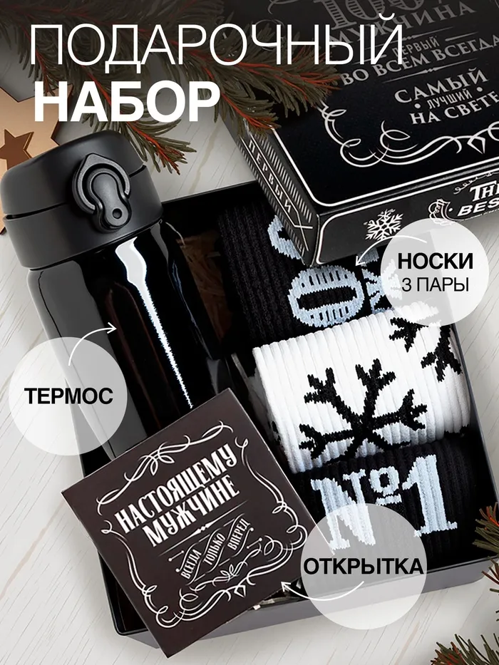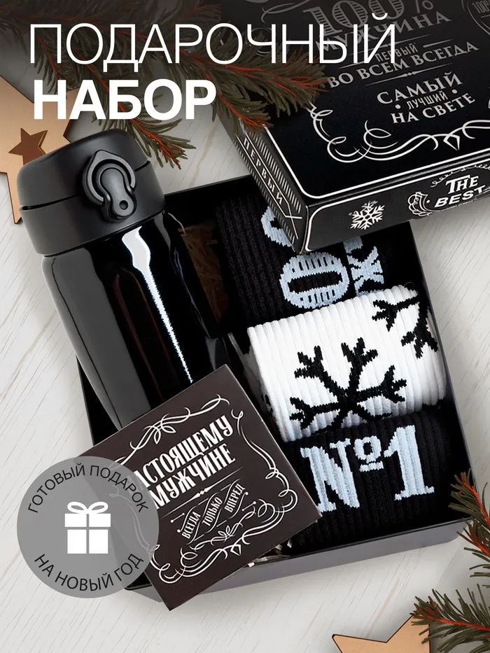 Новогодний подарочный набор термос и носки KAFTAN "Самый лучший", размер 41-44 (27-29 см) — Характеристики