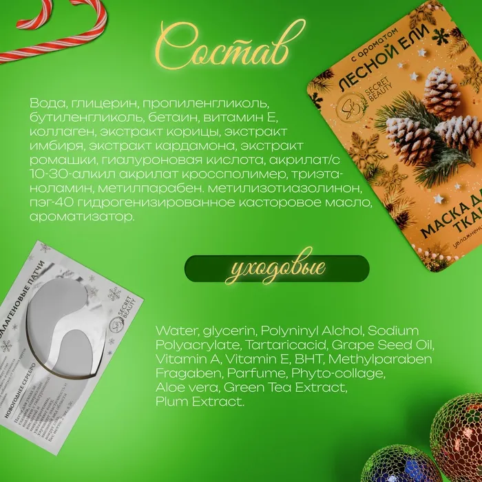 Новогодний подарочный набор «Волшебного Нового года», золотая серия: 3 маски и 2 патчей — Характеристики