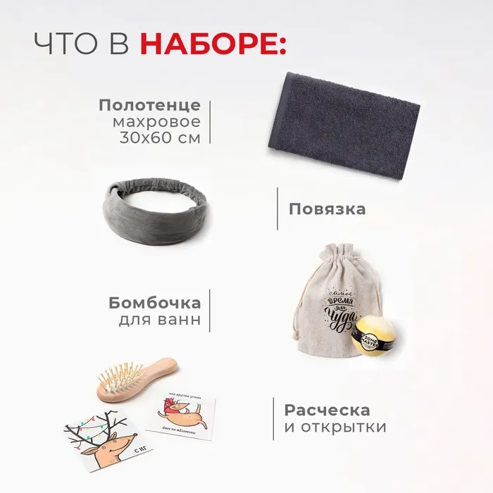 Новогодний подарочный набор «Время для чудес», полотенце и аксессуары — Характеристики