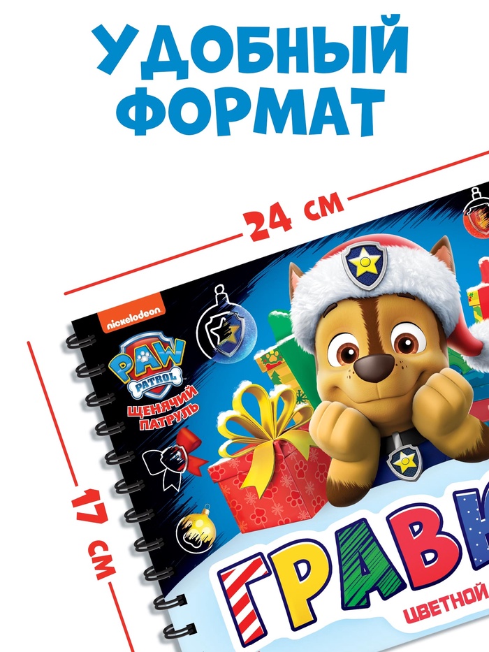 Новогодний подарок. Гравюры детские «Щенячий патруль», альбом из 8 гравюр, 12 стр, цветной фон — Характеристики