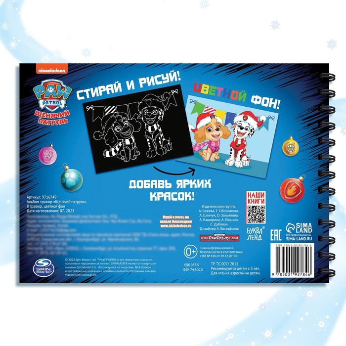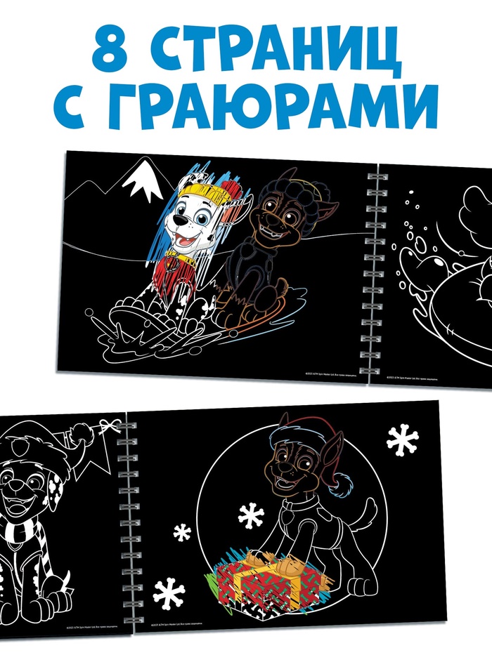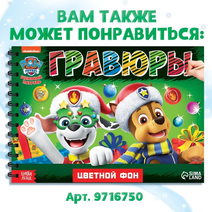 Новогодний подарок. Гравюры детские «Щенячий патруль», альбом из 8 гравюр, 12 стр, цветной фон