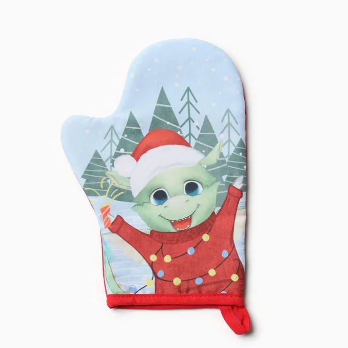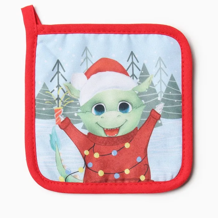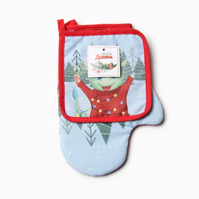 Новогодний подарок. Набор кухонный Доляна "Счастливый дракон": варежка 20х28 см, прихватка 17х17 см, 35% хл, 65% пэ — Характеристики