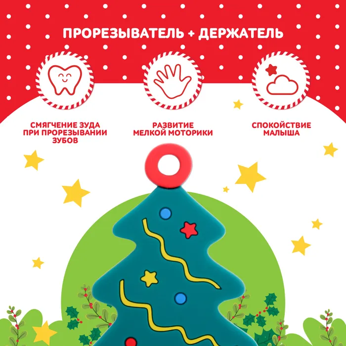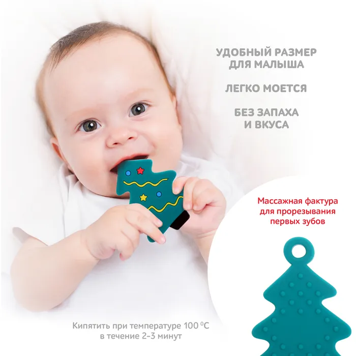 Новогодний прорезыватель для зубов «Ёлочка» разработан специально для малышей от 0 месяцев. Игрушка поможет облегчить боль при прорезывании зубов, а также потренировать моторику, тактильные ощущения и воображение.