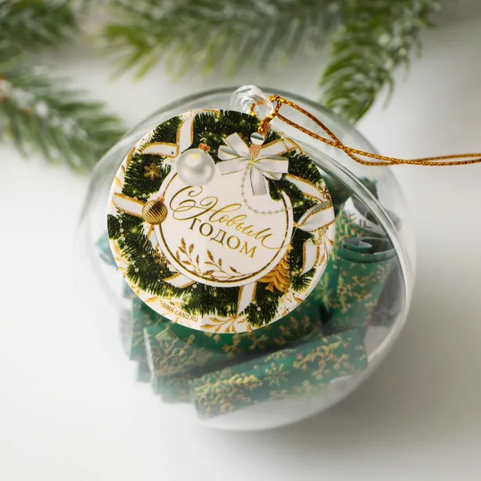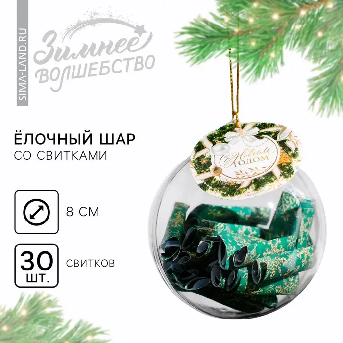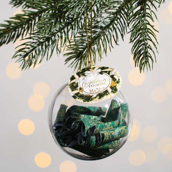 Новогодний шар ёлочный с пожеланиями «С Новым годом», 30 свитков, d=8 см — Характеристики