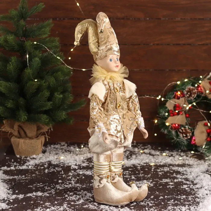 Новогодний шут «В блестящем костюме» двигается, 48×16 см, золото — Характеристики