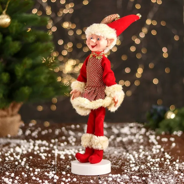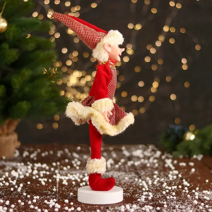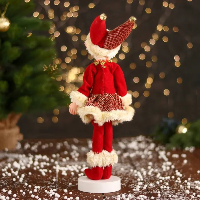 Новогодний шут «В платье в сеточку и мехом» 30 см, жёлто-красный — Характеристики