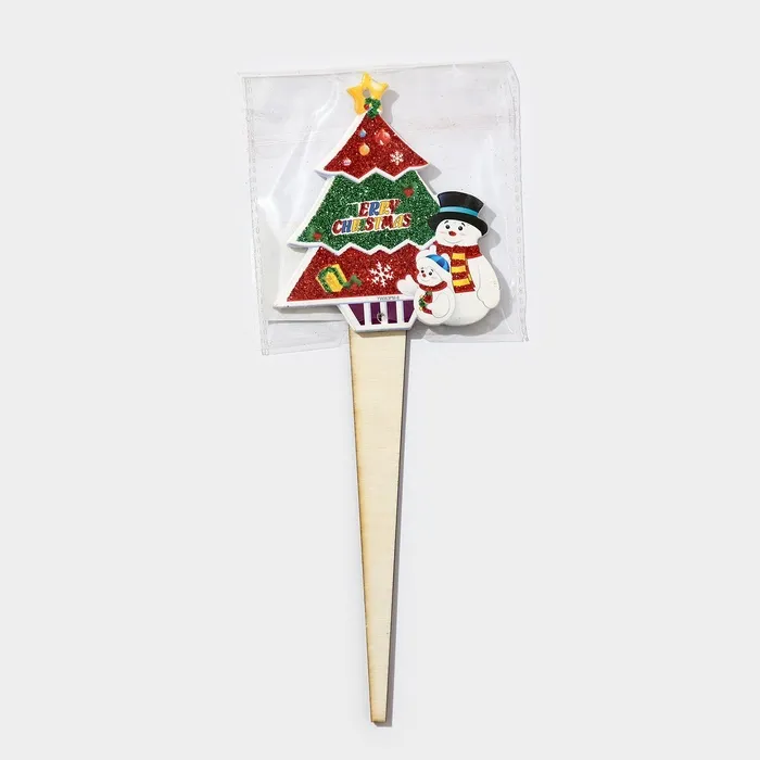 Новогодний топпер декоративный «Ёлка и снеговики», 8,8х25 см — Характеристики