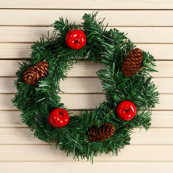 Этот венок превращает дом в пространство зимней истории и семейного тепла. Красно-зелёная палитра и натуральные мотивы работают вместе, чтобы передать атмосферу покоя и торжества. Используйте его как самостоятельный элемент или как часть уже готового убранства — он одинаково хорошо усиливает дух Нового года и уют предпраздничных дней.