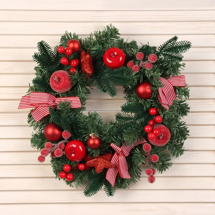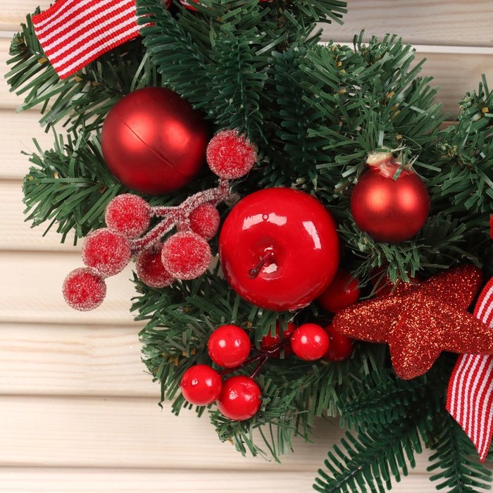 Венок новогодний d=20 см «Зимнее волшебство», с красными шариками