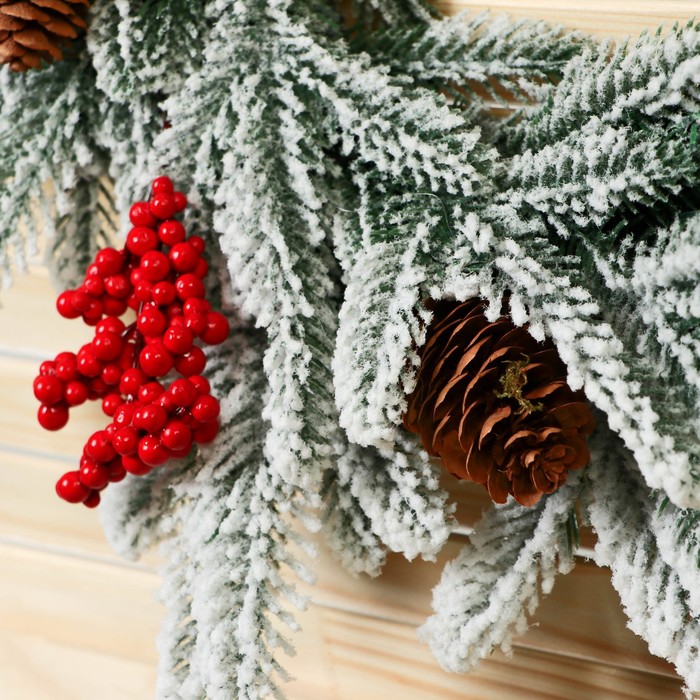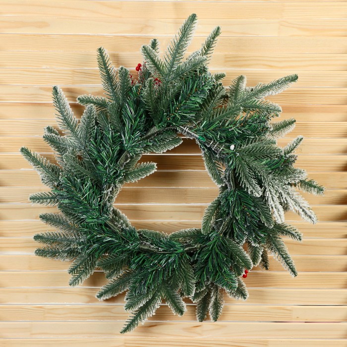 Новогодний венок d- 36 см «Зимнее волшебство. Уютная сказка» на дверь, на стену, декор веточки в снегу ягоды, шишки — Характеристики