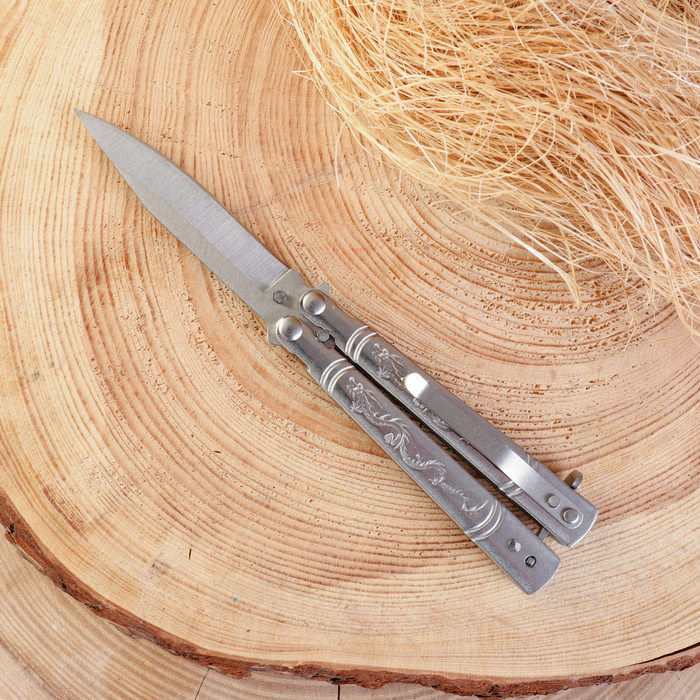 Нож-бабочка «Дракон» 17.5 см, клинок 69 мм/1 мм, серебристый — Характеристики