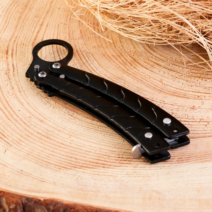 Нож-бабочка "Калиго", Мастер К, лезвие с прямым обухом 7см, рукоять с волнами 9см