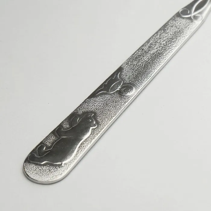 Нож из нержавеющей стали украшен изображением обаятельного героя и непременно понравится вашему крохе. Для безопасного использования края предмета затуплены.