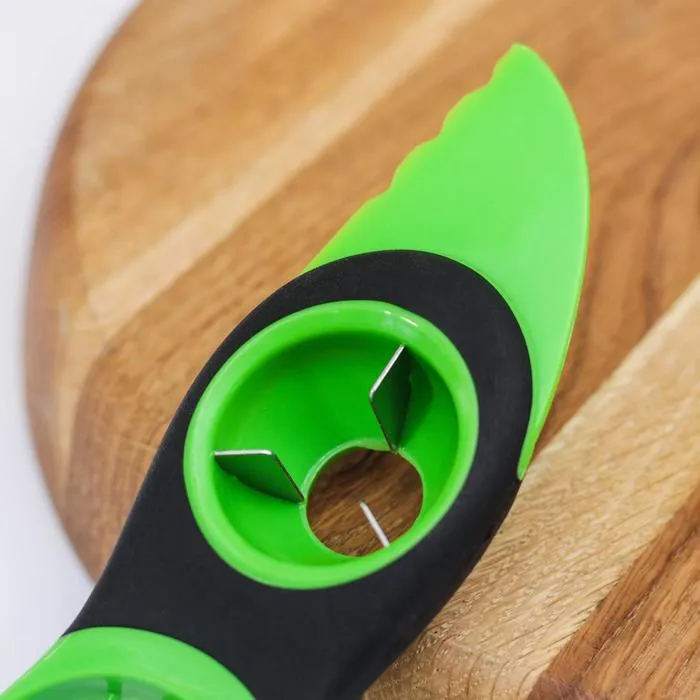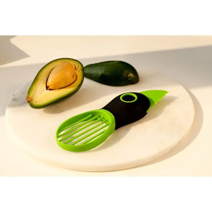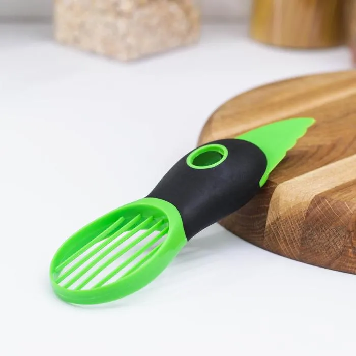 Нож для авокадо чёрно-зелёного цвета — компактный и удобный инструмент для аккуратной нарезки и удаления косточки. Лезвие из прочного пластика повторяет форму фрукта, обеспечивая точность при каждом разрезе. Яркий контрастный дизайн делает его заметным на кухне, а эргономичная ручка удобно ложится в руку. Подходит также для других мягких овощей и фруктов.