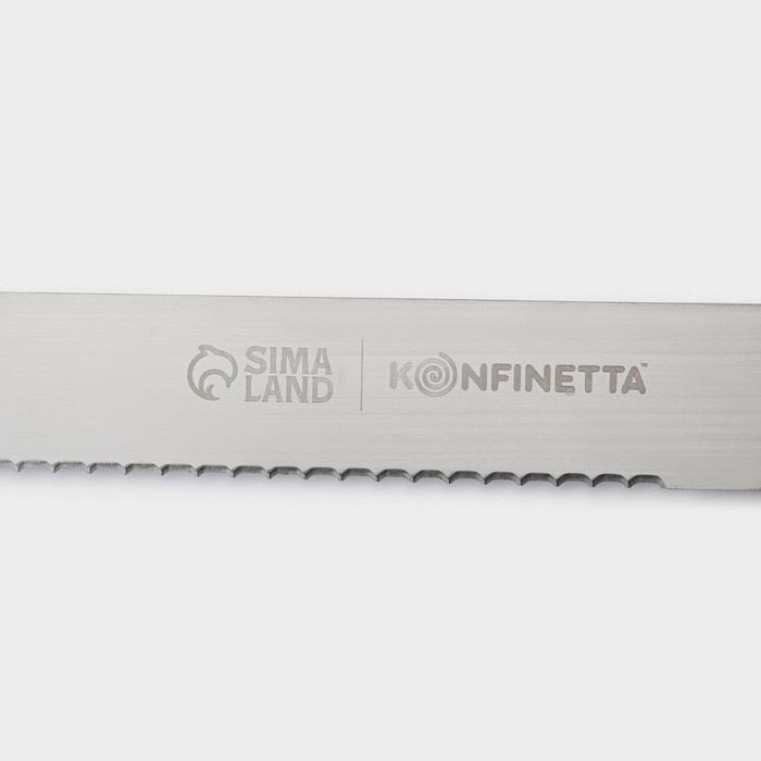 Нож для бисквита крупные зубцы KONFINETTA, длина лезвия 35 см, деревянная ручка — Характеристики