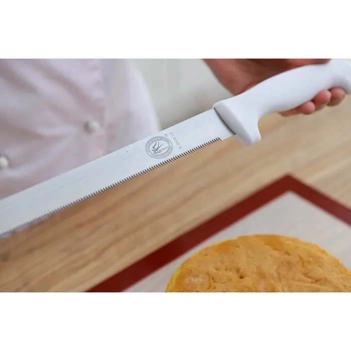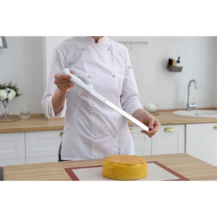 Нож для бисквита, мелкие зубчики, ручка пластик, рабочая поверхность 29,5 см, толщина лезвия 1,9 мм, цвет белый — Характеристики