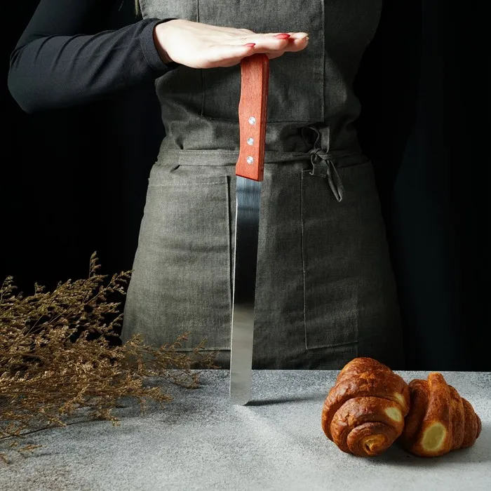 Нож для бисквита, ровный край, ручка дерево, длина лезвия 25 см, коричневый — Характеристики