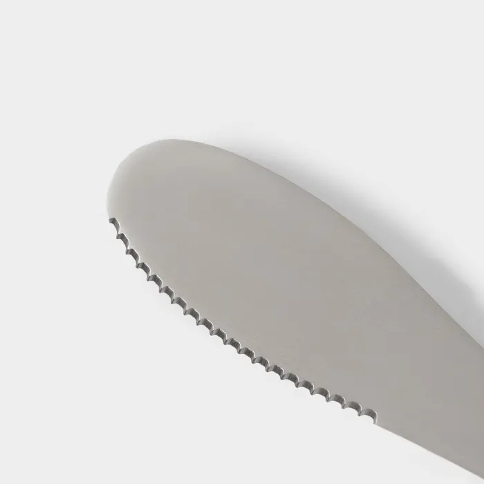 Нож кухонный для масла - это незаменимый инструмент на кухне для тех, кто любит готовить блюда с использованием масла. Этот нож изготовлен из высококачественной нержавеющей стали, которая обеспечивает его прочность и долговечность. Длина ножа позволяет легко и быстро намазывать масло на хлеб или другие продукты.
