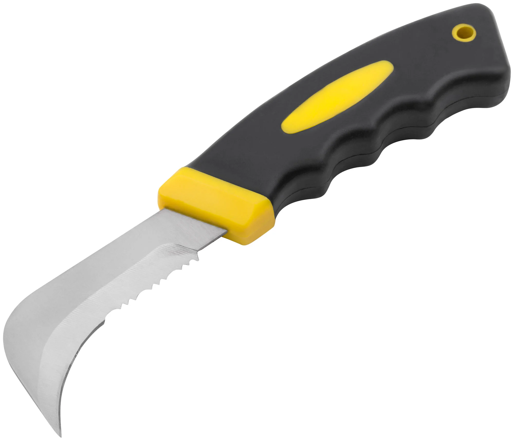 Лезвие изготовлено из высококачественной нержавеющей стали, что обеспечивает долговечность и стойкость к коррозии. Прорезиненная ручка позволяет комфортно удерживать инструмент даже при длительной работе, снижая усталость рук.