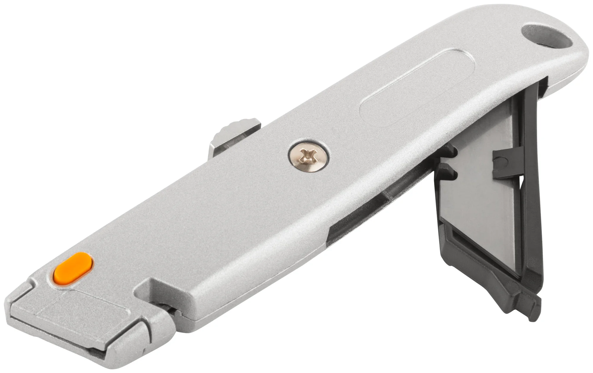 Корпус ножа выполнен из прочного алюминиевого сплава, обеспечивая надежность и долговечность инструмента. Лезвия изготовлены из высокоуглеродистой стали, что гарантирует острый и ровный рез. Встроенная кассета для хранения четырех лезвий позволяет удобно и безопасно менять их по мере необходимости.