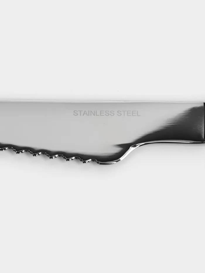 - эстетичный дизайн: серебристый цвет и лаконичные линии делают нож не только функциональным, но и стильным аксессуаром на вашем столе.