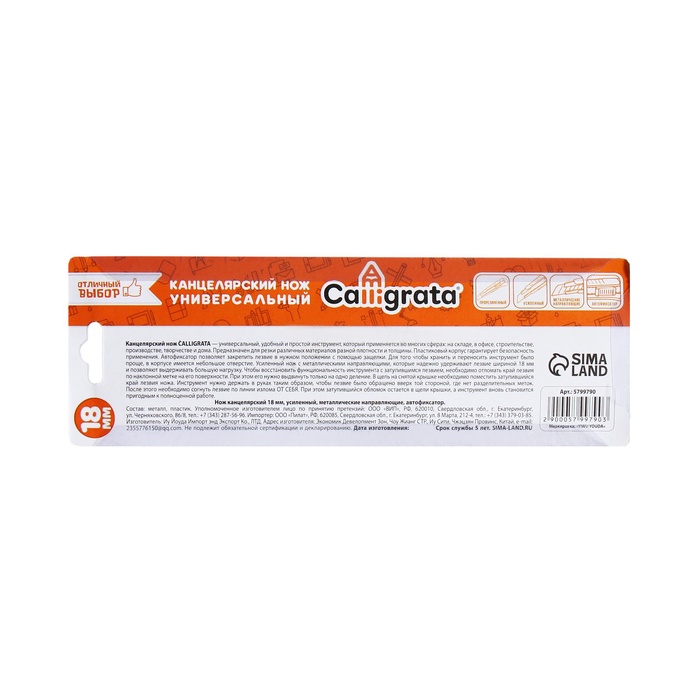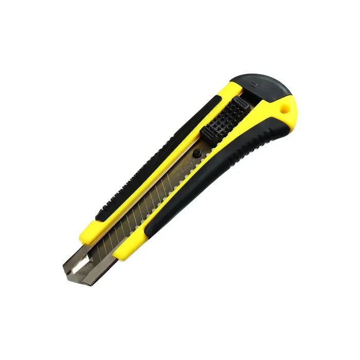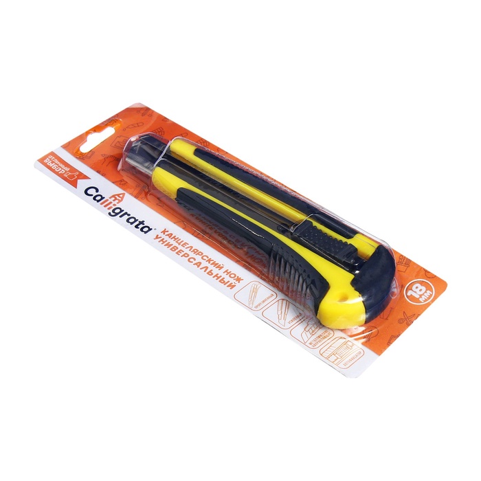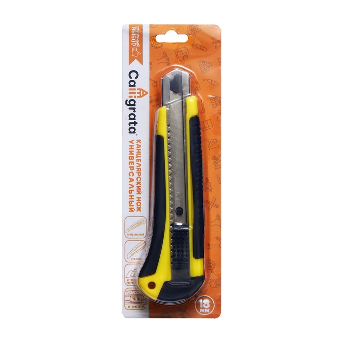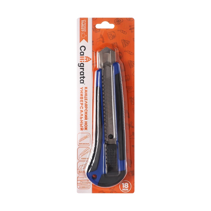 Легкий корпус с металлическими направляющими надежно удерживает остро отточенное лезвие стандартной ширины.По мере использования отработанные концы лезвия просто отламываются.Дизайн корпуса ножа эргономичный.Резиновые края ручки предотвращают скольжение пальцев, исключают их травмирование.Для удобства хранения имеется отверстие для подвеса.Яркая расцветка выделяет инструмент среди других подобных, нож упакован в блистер с европодвесом.Канцелярский нож - изделие, способное выручить в самых неожиданных ситуациях, а потому должно присутствовать в каждом офисном или домашнем наборе!