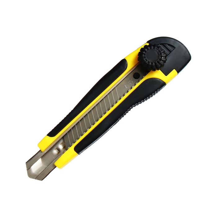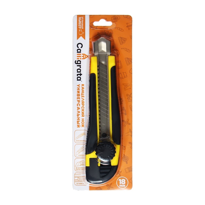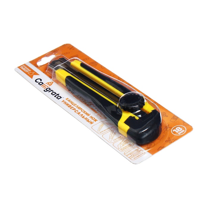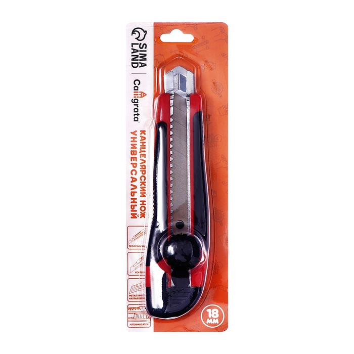 Легкий корпус с металлическими направляющими надежно удерживает остро отточенное лезвие стандартной ширины.По мере использования отработанные концы лезвия просто отламываются.Дизайн корпуса ножа эргономичный.Резиновые края ручки предотвращают скольжение пальцев, исключают их травмирование.Для удобства хранения имеется отверстие для подвеса.Яркая расцветка выделяет инструмент среди других подобных, нож упакован в блистер с европодвесом.Канцелярский нож - изделие, способное выручить в самых неожиданных ситуациях, а потому должно присутствовать в каждом офисном или домашнем наборе!