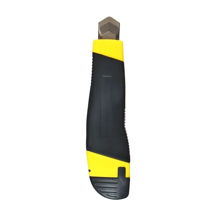 Нож канцелярский 18 мм пластик, с металлическим направляющим фиксатором, прорезиненный, в блистере, МИКС — Характеристики