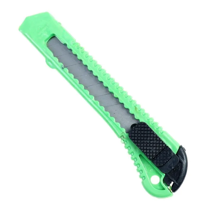 Легкий корпус с металлическими направляющими надежно удерживает остро отточенное лезвие стандартной ширины.По мере использования отработанные концы лезвия просто отламываются.Дизайн корпуса ножа эргономичный.Резиновые края ручки предотвращают скольжение пальцев, исключают их травмирование.Для удобства хранения имеется отверстие для подвеса.Яркая расцветка выделяет инструмент среди других подобных, нож упакован в блистер с европодвесом.Канцелярский нож - изделие, способное выручить в самых неожиданных ситуациях, а потому должно присутствовать в каждом офисном или домашнем наборе!