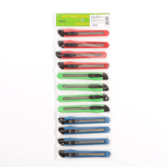 Нож канцелярский, лезвие 9 мм, корпус пластик, фиксатор, блистер, корпус МИКС — Характеристики