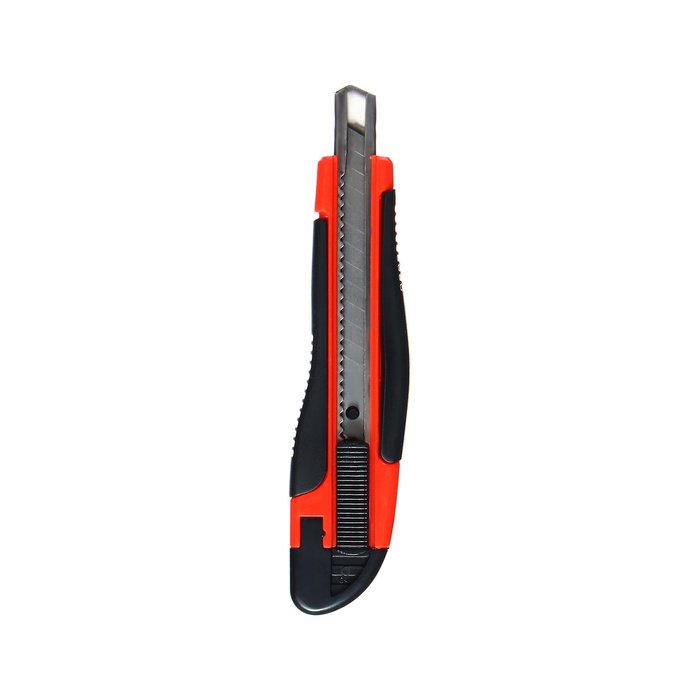 Нож канцелярский, лезвие 9 мм, корпус пластик, с резиновым держателем, с металл., направляющей, фиксатор — Характеристики