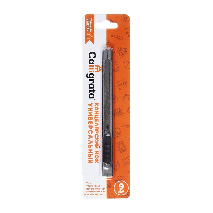 Нож канцелярский, лезвие 9 мм, с металлической направляющей, фиксатор, блистер — Характеристики