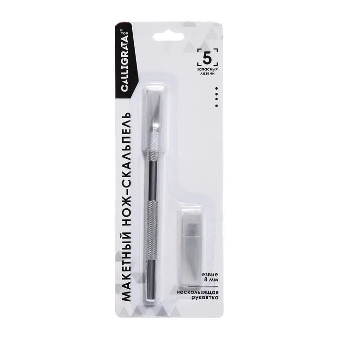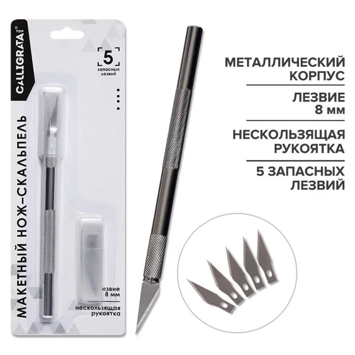 Погрузитесь в мир точности и безопасности с нашим универсальным инструментом для резки. Этот деликатный канцелярский нож-скальпель с дополнением из пяти сменных лезвий обещает беспрецедентную остроту и долговечность. Выбирайте надёжность и устойчивость для точных работ, которые не терпят компромиссов.