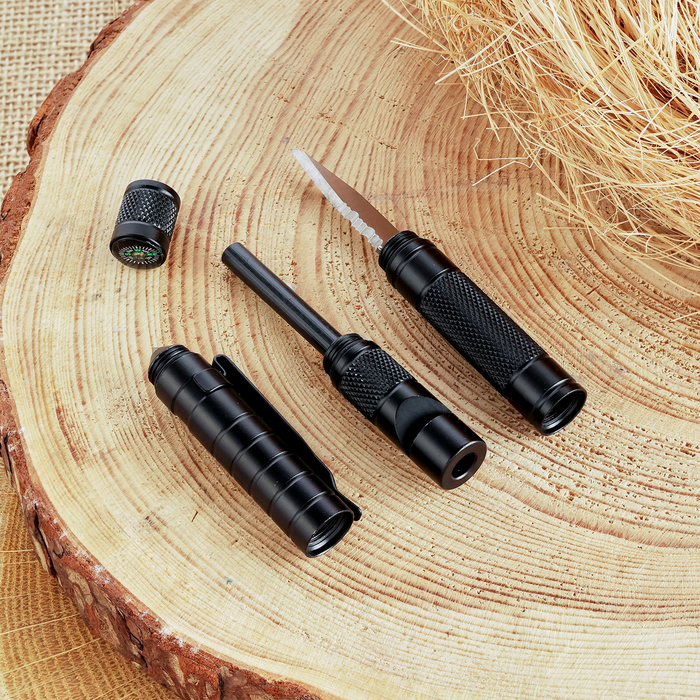 Складной нож с огнивом — это надёжный инструмент для тех, кто ценит практичность и функциональность. Металлическая ручка обеспечивает прочность и долговечность, а наличие фиксатора делает использование безопасным. Этот нож станет верным спутником в походах, на рыбалке или в повседневных задачах.