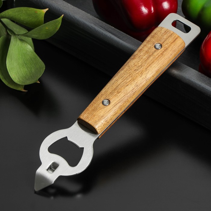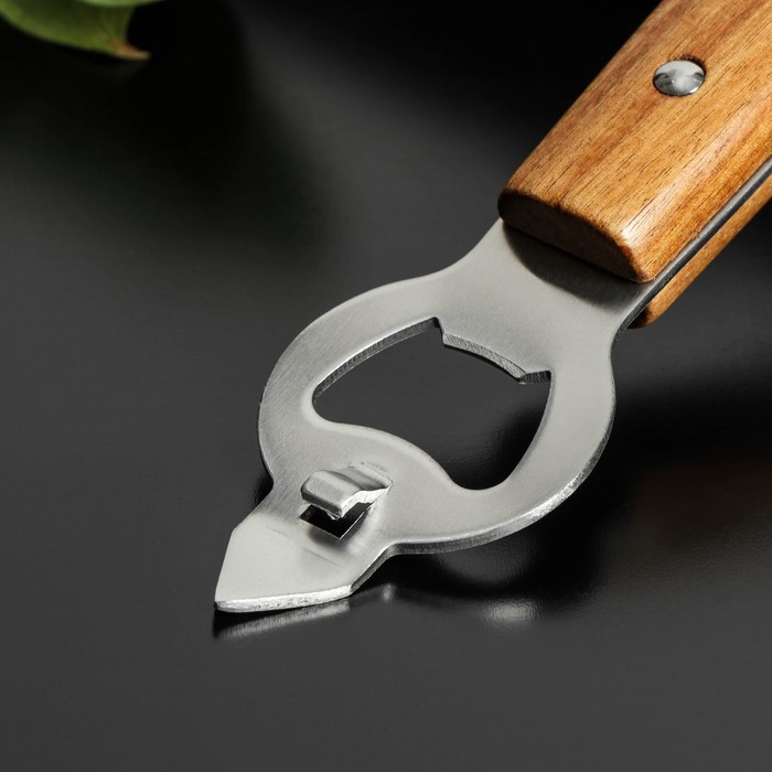 Режущая часть имеет острый край, который проходит по краю банки, разрезая металл и позволяя открыть крышку.Консервный нож является необходимым инструментом на кухне для открывания консервных банок и других емкостей с металлическими крышками.Он помогает сэкономить время и усилия при приготовлении пищи, особенно если вы часто используете консервы.