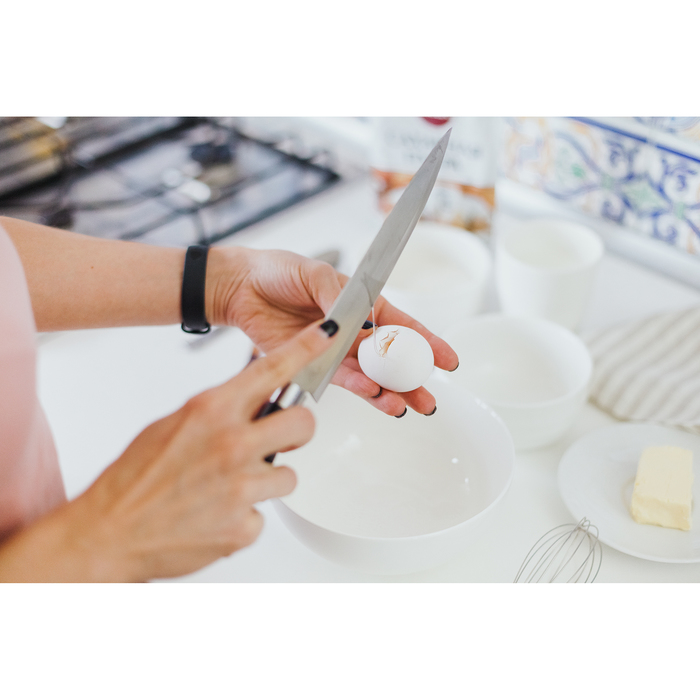 Лезвие ножа изготавливается из высококачественной стали, что обеспечивает его прочность и долговечность.Эргономичная ручка: ручка ножа изготовлена из нескользящего материала, который обеспечивает надежный захват и комфортное использование ножа даже при длительной работе.Универсальный размер: нож имеет оптимальный размер, что позволяет использовать его для выполнения различных задач на кухне, от нарезки небольших ингредиентов до разделки крупных кусков мяса.Острое лезвие: благодаря качественной заточке лезвия, нож легко справляется с нарезкой самых разных продуктов, сохраняя их текстуру и свежесть.Многофункциональность: нож универсальный может использоваться для нарезки, измельчения и разделки различных продуктов - от овощей и фруктов до мяса и рыбы.Легко ухаживать: нож легко моется и очищается от остатков продуктов, что позволяет поддерживать его в чистоте и порядке.