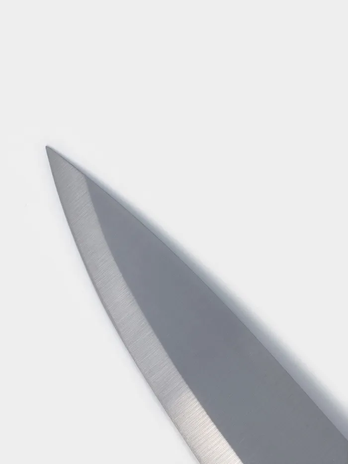 Лезвие ножа изготавливается из высококачественной стали, что обеспечивает его прочность и долговечность.Эргономичная ручка: ручка ножа изготовлена из нескользящего материала, который обеспечивает надежный захват и комфортное использование ножа даже при длительной работе.Универсальный размер: нож имеет оптимальный размер, что позволяет использовать его для выполнения различных задач на кухне, от нарезки небольших ингредиентов до разделки крупных кусков мяса.Острое лезвие: благодаря качественной заточке лезвия, нож легко справляется с нарезкой самых разных продуктов, сохраняя их текстуру и свежесть.Многофункциональность: нож универсальный может использоваться для нарезки, измельчения и разделки различных продуктов - от овощей и фруктов до мяса и рыбы.Легко ухаживать: нож легко моется и очищается от остатков продуктов, что позволяет поддерживать его в чистоте и порядке.