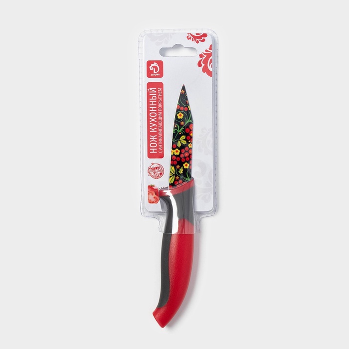 Нож кухонный с антиналипающим покрытием Доляна «Русский узор», лезвие 8 см — Характеристики