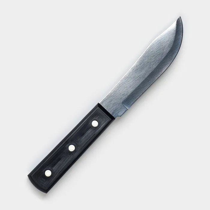 Нож из нержавеющей стали с ручкой из практичного пластика — необходимый помощник для повара. Предмет прослужит долгие годы и сделает готовку быстрой и приятной.