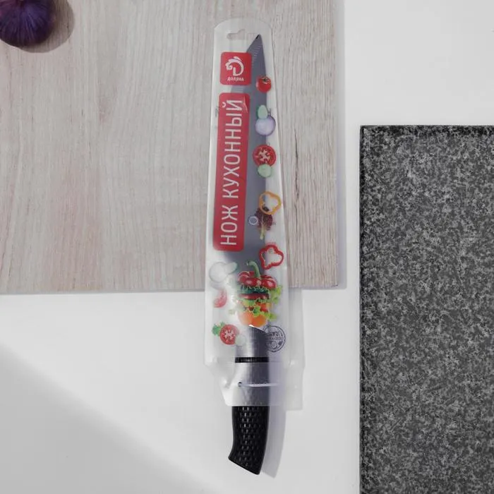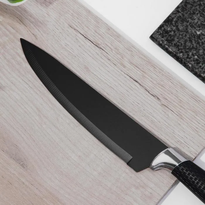 Нож кухонный с антиналипающим покрытием Доляна «Супер-блэк», лезвие 20 см, чёрный — Характеристики