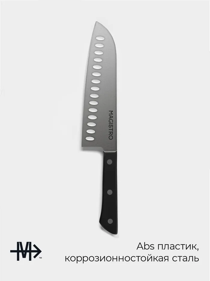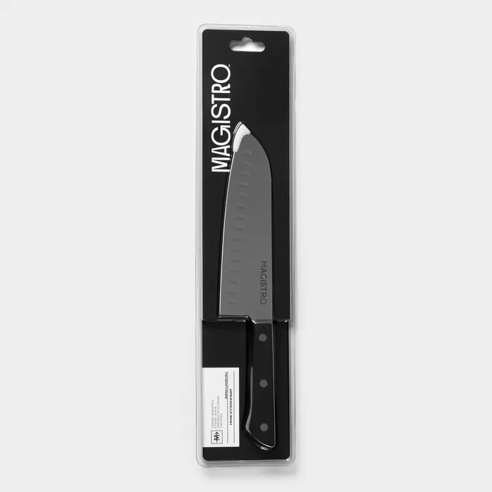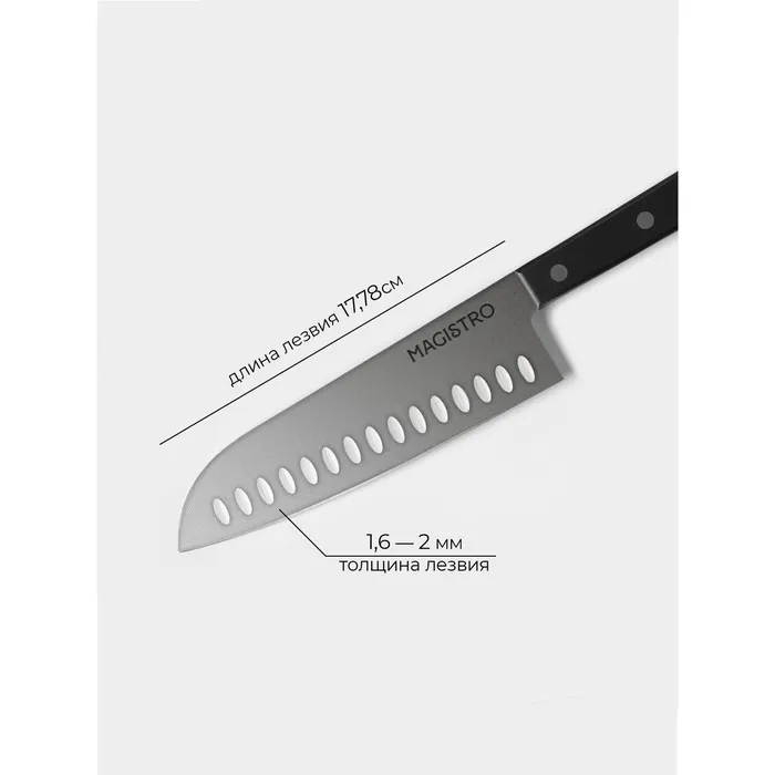 Нож кухонный сантоку Hinshitsu, нержавеющая сталь, лезвие 17.8 см, длина 29.5 см, чёрный — Характеристики