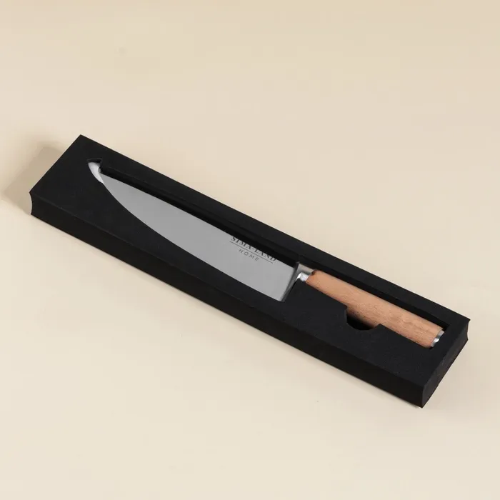 - Изысканный стиль: бежевый цвет и натуральная деревянная ручка придают ножу элегантный и современный вид.