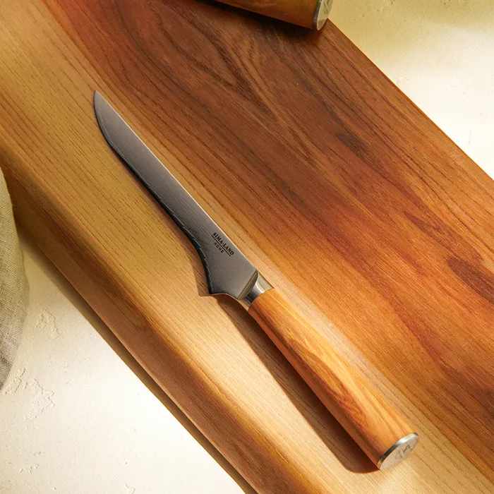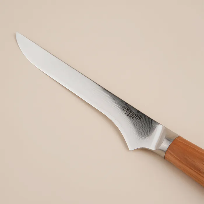 Этот изысканный обвалочный нож из серии «Оливия» от SL Home станет истинным украшением вашей кухни. С его помощью процесс разделки мяса превращается в настоящее искусство. Лезвие длиной 14 см изготовлено из прочной дамасской стали, которая славится своей долговечностью и превосходными режущими свойствами. Эта сталь не только устойчива к коррозии, но и сохраняет остроту в течение длительного времени, что делает нож идеальным выбором для ежедневного использования.