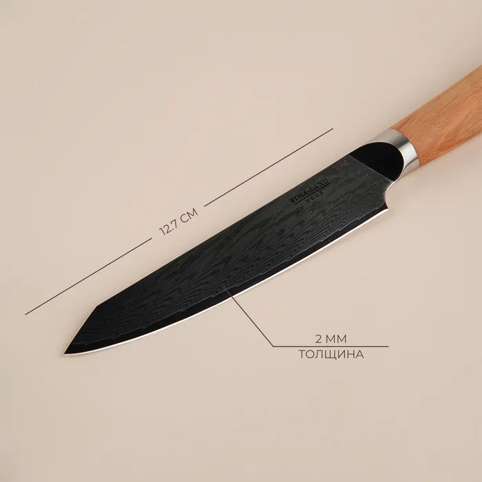 Нож кухонный SL Home «Оливия», универсальный, лезвие 12.7 см, дамасская сталь, коричневый — Характеристики
