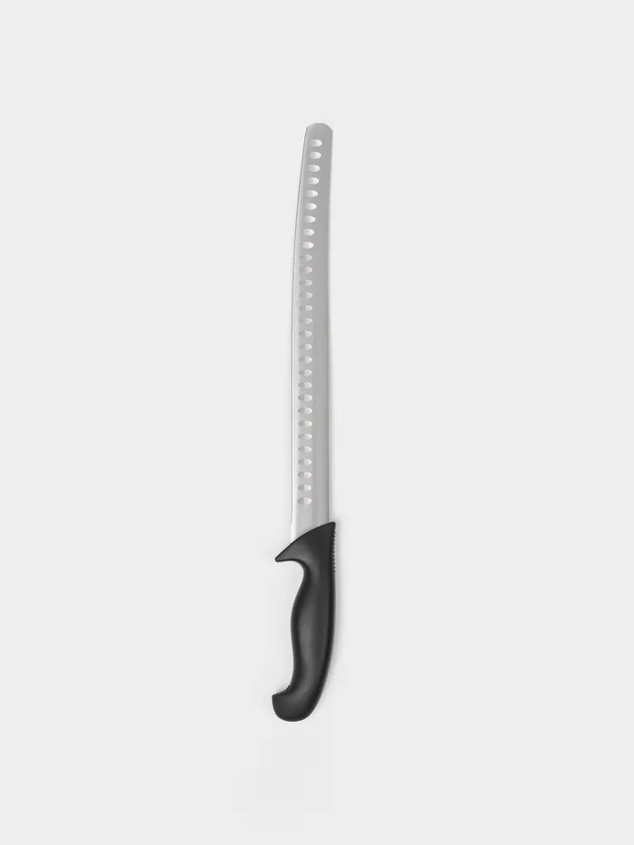 Нож "Sharp" идеально подходит для нарезки ростбифа, ветчины, рыбы, сыра и других деликатесов. Длинное и гибкое лезвие позволяет создавать ровные ломтики по всей длине продукта, а эргономичная черная ручка обеспечивает удобный и надежный захват.