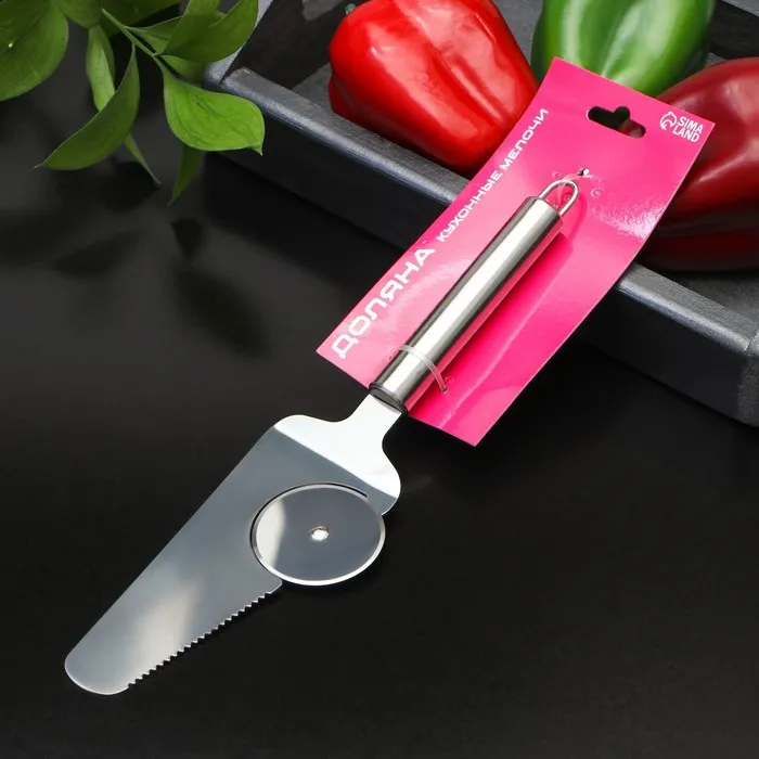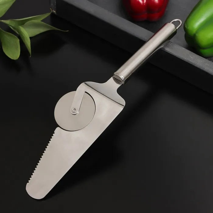 Нож-лопатка для пиццы отличный выбор для любителей популярного итальянского блюда! Круглый нож предназначен для нарезки пиццы, а лопатка поможет разложить порционные кусочки по тарелкам. Одно приспособление – несколько функций!